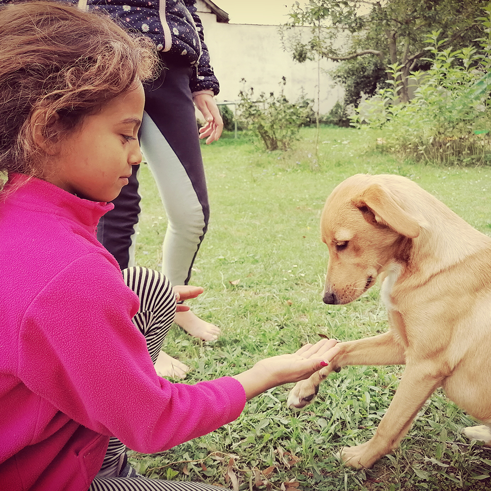+ Hundeeinheiten – Übungen mit unserer semmelbraunen „Semmeline“ (Kinder dürfen Tricks mit ihr üben und lernen den Umgang mit einem Hund)